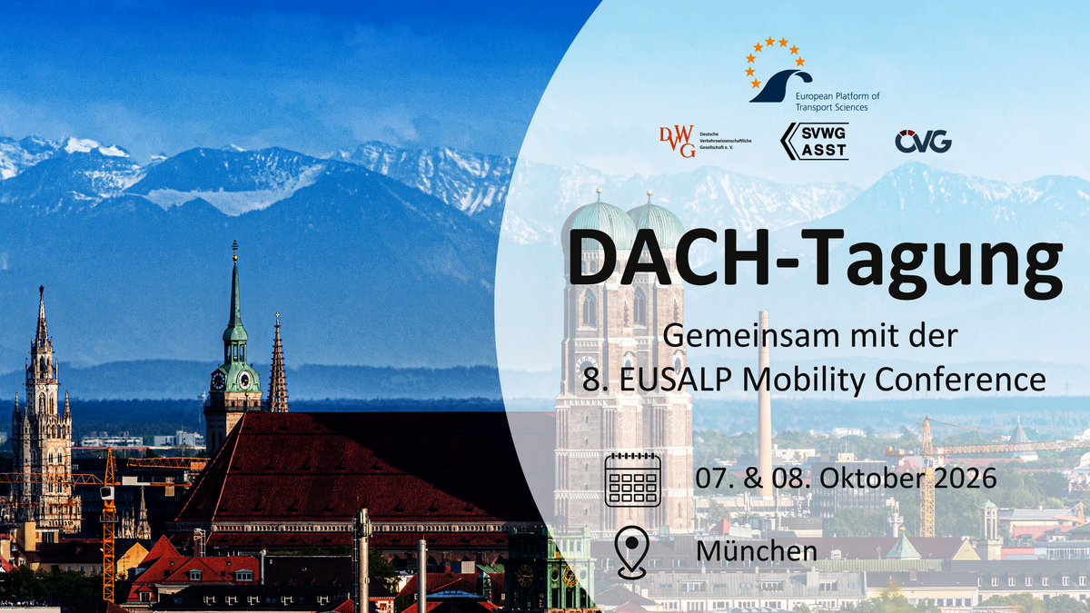 Alle zwei Jahre organisieren die drei Schwestergesellschaften der Verkehrswissenschaften aus Deutschland (DVWG), Österreich (ÖVG) und der Schweiz (SVWG) unter der Koordination der European Platform of Transport Sciences (EPTS Foundation e. V.) die DACH-Tagung. Nach der erfolgreichen Tagung in Innsbruck 2024 geht der Staffelstab 2026 an die DVWG.